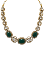 Green Stone Kundan Necklace Set with Statement Pendant | Heerhaar Jewellery